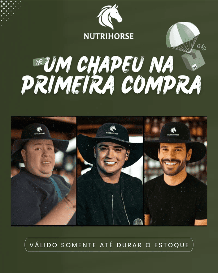 Receba um chapéu Nutrihorse no estilo do cantor mais amado do brasil.